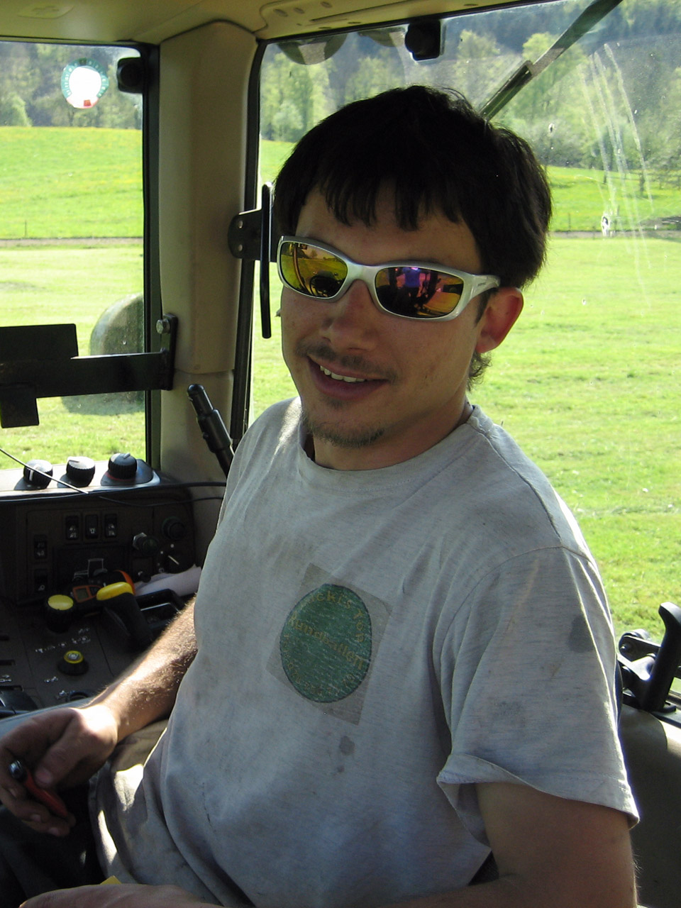 Mit der selbstgebauten Dosieranlage die vorne an der Presse angebaut wird, ist es nun möglich ohne grossen Aufwand auch Rundballen aus dem Heustock zu pressen. Das Heu wird einfach von oben in die Dosieranlage gegeben, der Rest macht die Maschine selbst. Der fertige Ballen muss anschliessend hinter der Presse entfernt werden Bei einigen Testläufen erreichten wir Ballengewichte von durchschnittlich 500 kg bei einem Ballendurchmesser von 1.5 m. Das entpsricht etwa 17 gut gepressten Kleinballen.